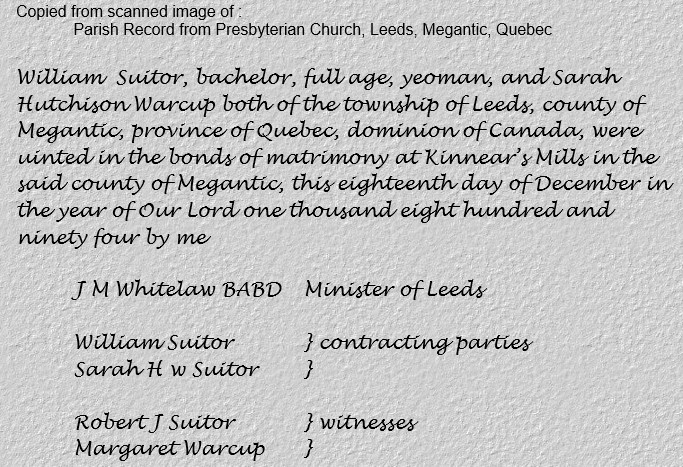 Marriage Leeds 1894 - Warcup - Sarah Hutcheson & Suitor - William