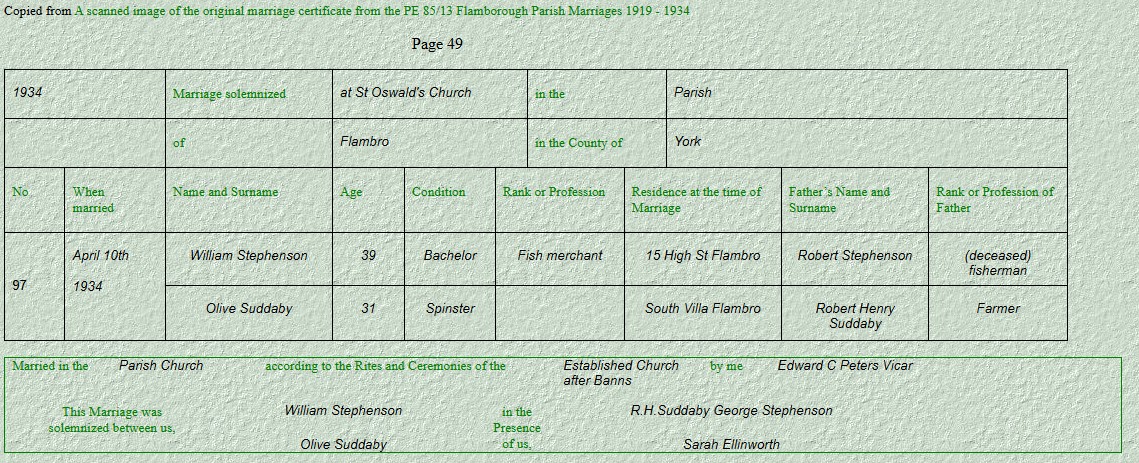 Marriage PE85-13 1934 Stephenson - William & Suddaby - Olive