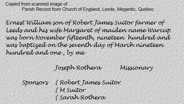 Baptism Leeds 1901 - Suitor - Ernest William