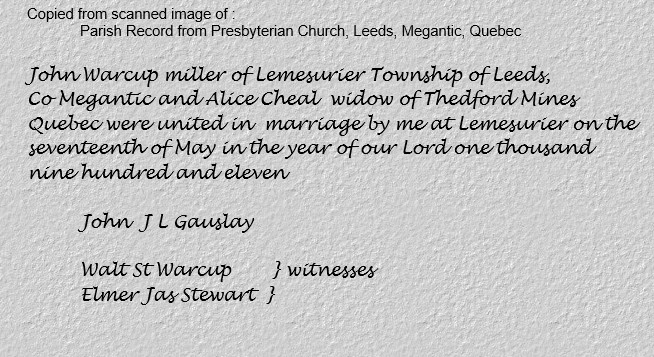 Marriage Leeds 1911 - Warcup - John & Cheal - Alice