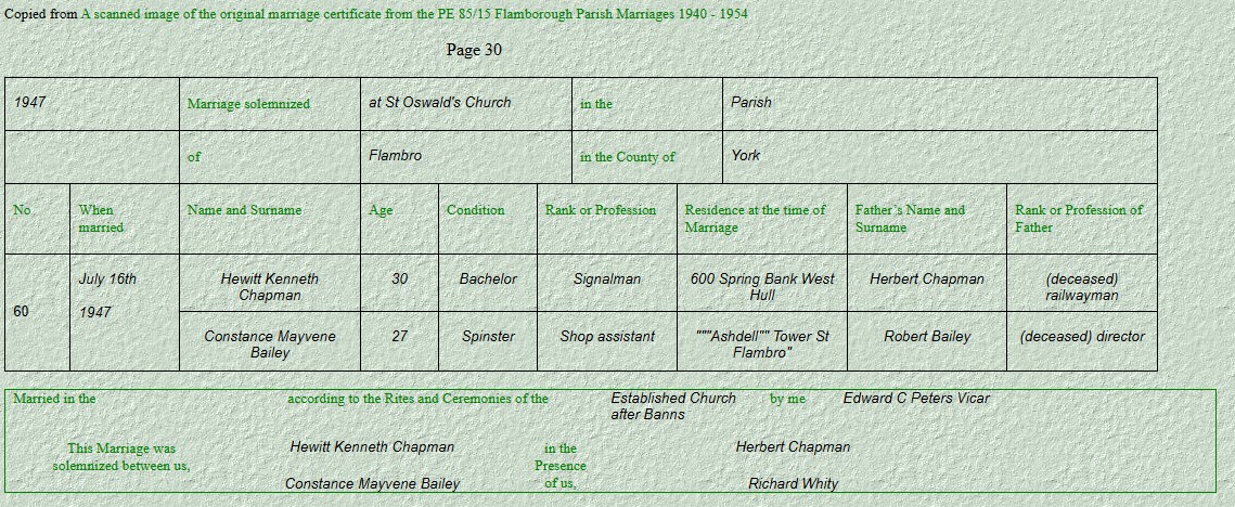Marriage PE85-15 1947 Chapman - Hewitt Kenneth & Bailey - Constance Mayvene