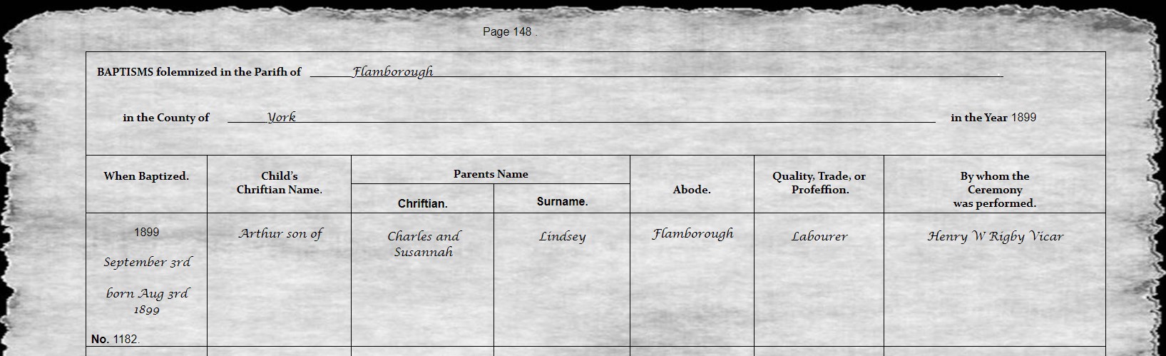 Baptism PE85-7 1899 Lindsey - Arthur
